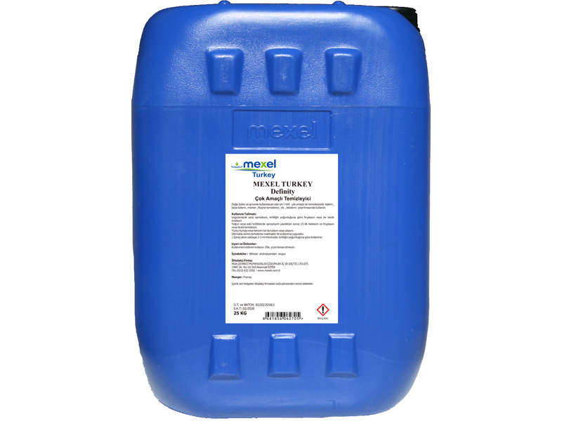 Çevre dostu, inovatif, geleneksel solventlerden daha etkili, su bazlı bir temizleyici olan Mexel® Definity, non-toxic, yanmaz, seyreltilebilir özellikleri ile her türlü marker, kalem izi, reçine vb. iz ve lekeleri kolaylıkla, ekonomik olarak temizler. Ph. derecesi nötr olan Mexel® Definity kostik içermeyen bir yapıya sahiptir.
